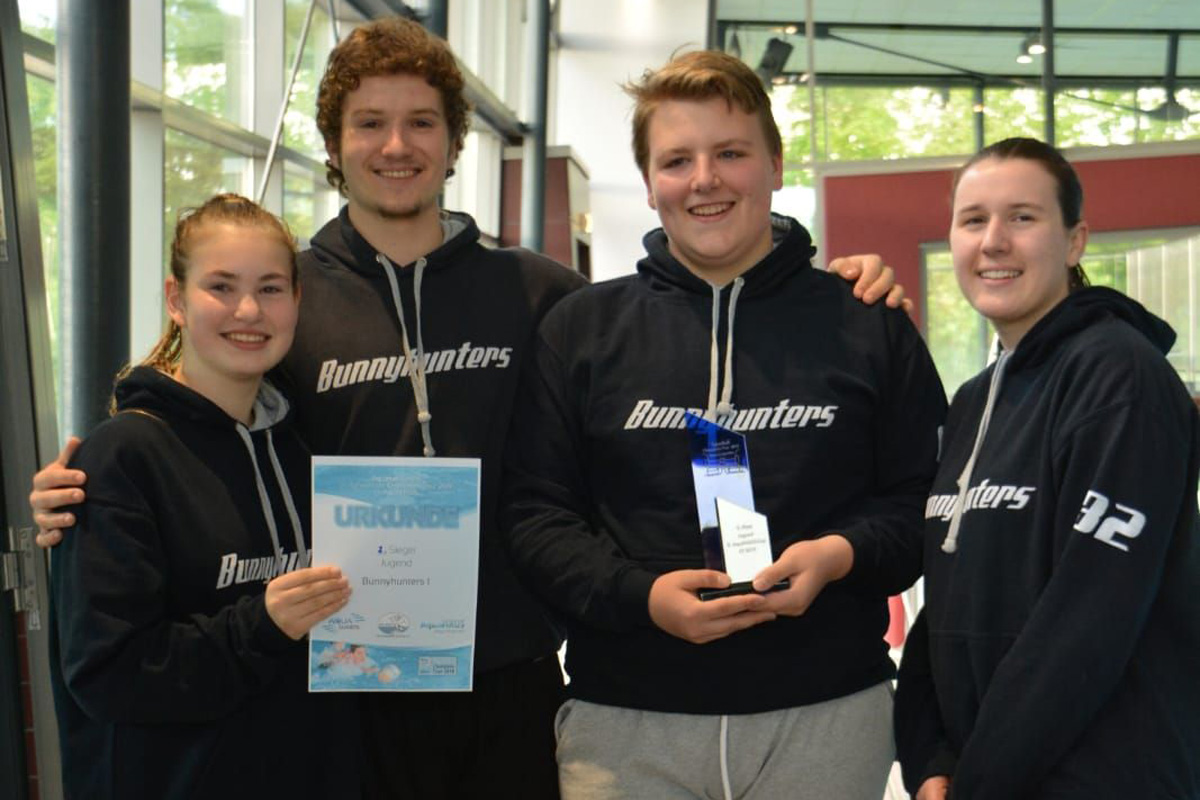 Mit 2 Ausfällen nur zu 4. angereist, bereits ergänzt durch einen Spieler der 2. Mannschaft, stellte sich das Team der Bunnyhunters Jugend I der Mammutaufgabe wieder zu gewinnen. Durch Teamplay, Taktik und immer noch hohe individuelle Klasse wurden die Ausfälle wett gemacht und das Finale erreicht. Im Finale reichte es zwar dann nicht zum Sieg gegen körperlich überlegene AquaGuards, dennoch kann der 2. Platz mit Stolz nach Hause genommen werden.