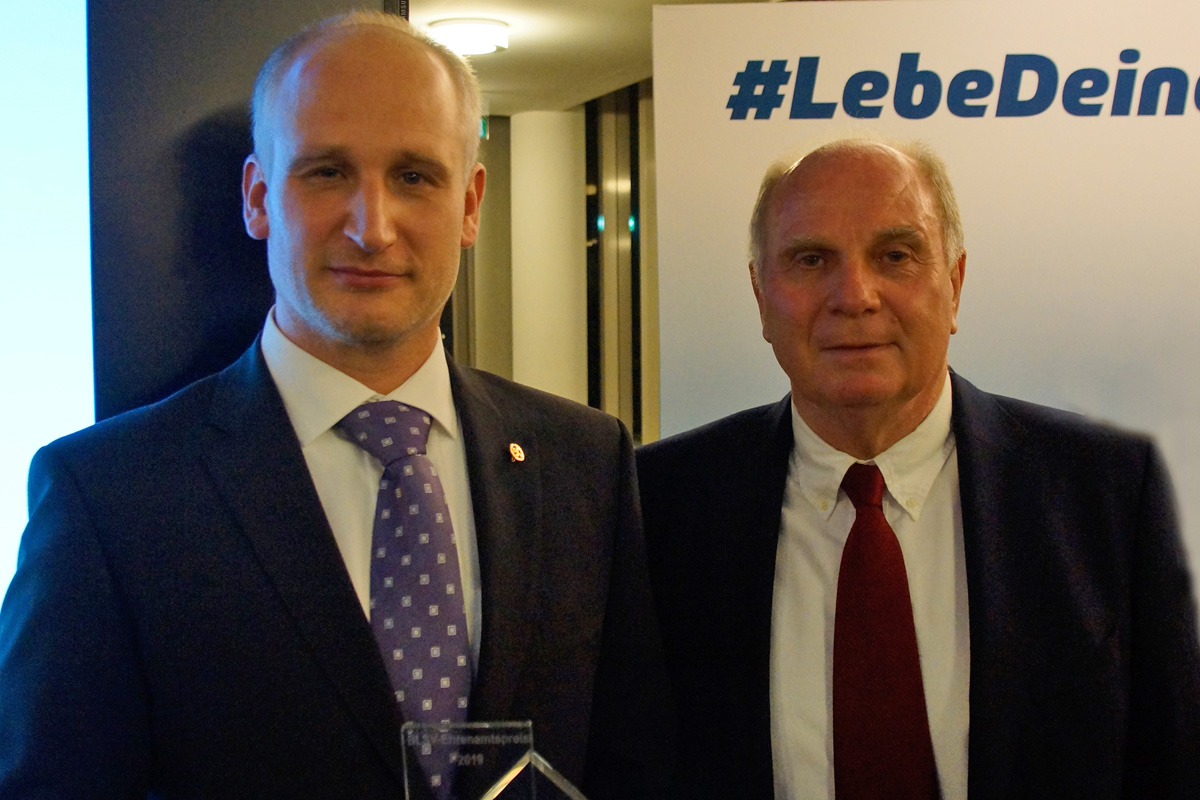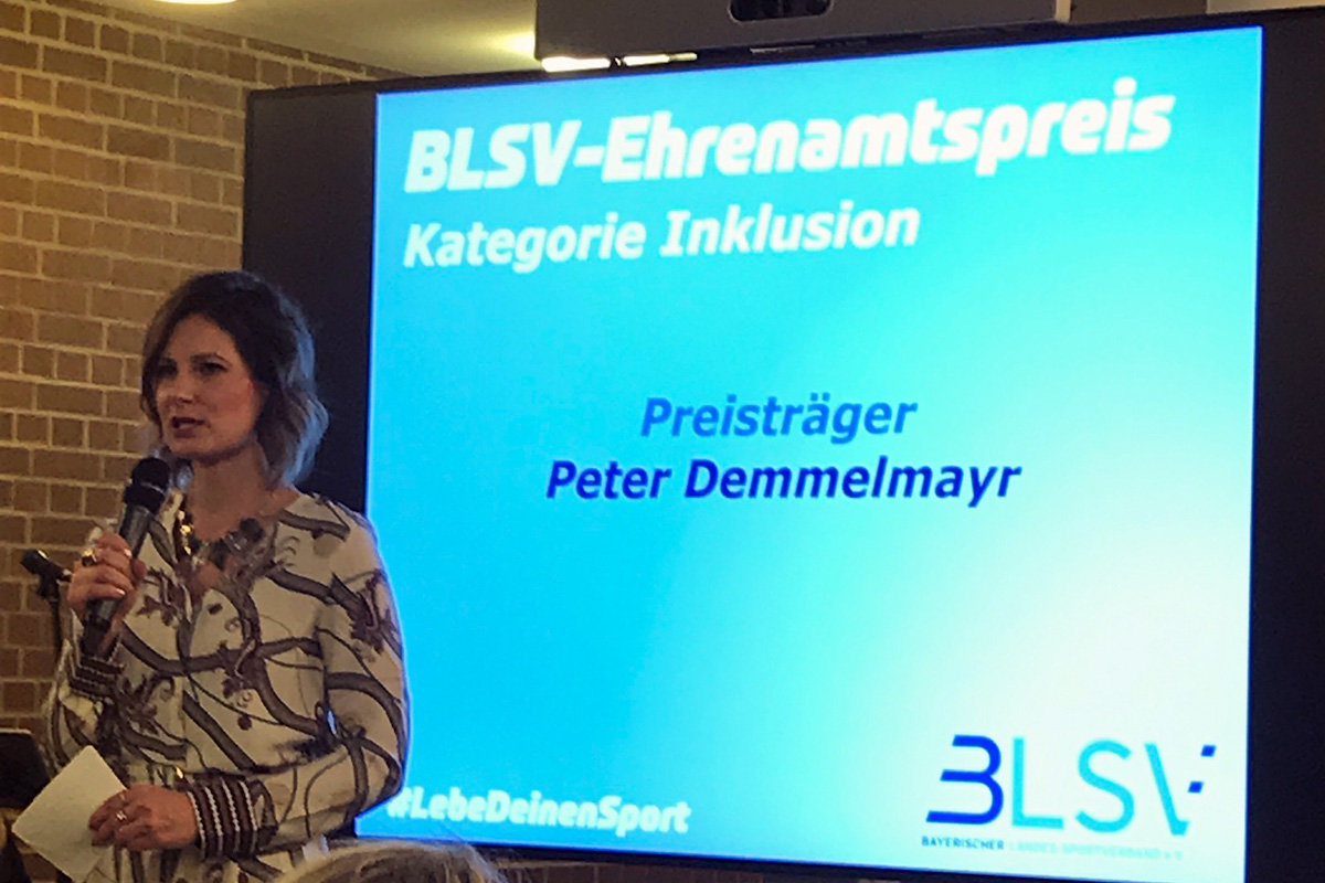 Am 29. November wurde unser Abteilungsleiter Peter Demmelmayr im Bayrischen Staatsministerium für Familie, Arbeit und Soziales mit dem BLSV Ehrenamtspreis ausgezeichnet. Hier wurden stellvertretend für die über 300.000 Ehrenamtlichen in ganz Bayern 7 Persönlichkeiten aus den einzelnen Bezirken sowie 3 Personen in Sonderkategorien geehrt. In der Sonderkategorie "Inklusion" wurde Peter für seine Verdienste in der Sportart Aquaball geehrt. Die Laudatio hielt hierbei die Hausherrin herself - Staatsministerin Kerstin Schreyer. Sie würdigte in ihrer Ansprache sein langjähriges Handeln für die Sportart Aquaball aber vor allem seinen Weg für die Inklusion in diesem Sport. Bekanntester Preisträger des BLSV Ehrenamtspreises war Uli Hoeneß, der für sein soziales Engagement ausgezeichnet wurde und Peter ebenfalls zu seinem Preis gratulierte.