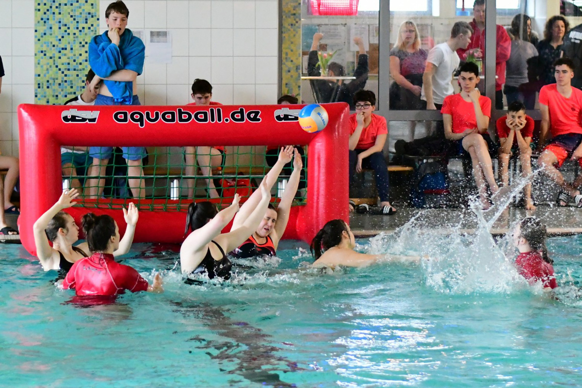 2013 haben die Bunnyhunters den Grundstein in Sachen Inklusion beim Aquaball gesetzt. Damals wurde mit der Johannes-Neuhäusler-Schule vom Franziskuswerk Schönbrunn ein gemeinsames Projekt gestartet, welches nicht nur bei den Teilnehmer n sehr gut angekommen ist. Jetzt, gute 6 Jahre später, sind die Dachauer Aquaballer immer noch gerne in Sachen Inklusion aktiv. Dies wurde am 27. Juni beim Sportfest der Johannes-Neuhäusler-Schule deutlich sichtbar, denn hier waren 32 Teilnehmer aus verschiedenen Jahrgangsstufen im heimischen Freibad im Aquaball-Fieber! Während Abteilungsleiter Peter Demmelmayr, der wieder den Kontakt hergestellt hat, in seiner Rolle als Cheftrainer und Schiri am Beckenrand aktiv war, unterstützten Patrick Frank, Sarah Hammami, Henning Knebel, Andreas Lutzenberger sowie Markus und Stefan Riedl die Teilnehmer im Wasser und gaben Hilfestellung bei den Trainingsübungen. Anschließend wurde das gelernte von der Theorie in die Praxis umgesetzt und man spielte ein kurzes Turnier. Egal, ob von der Schulleitung, den Lehrkräften oder den Teilnehmer - die Resonanz fiel durchgängig absolut positiv aus. So darf man davon ausgehen, dass es auch in Zukunft eine Zusammenarbeit mit dem Franziskuswerk und den Dachauer Bunnyhunters geben wird und im Hallen- oder Freibad wieder tieffliegende Aquabälle zu beobachten sind. An dieser Stelle nochmal herzlichen Dank an alle, die bei dieser Aktion dabei waren und hierführ extra einen Tag Urlaub genommen haben!