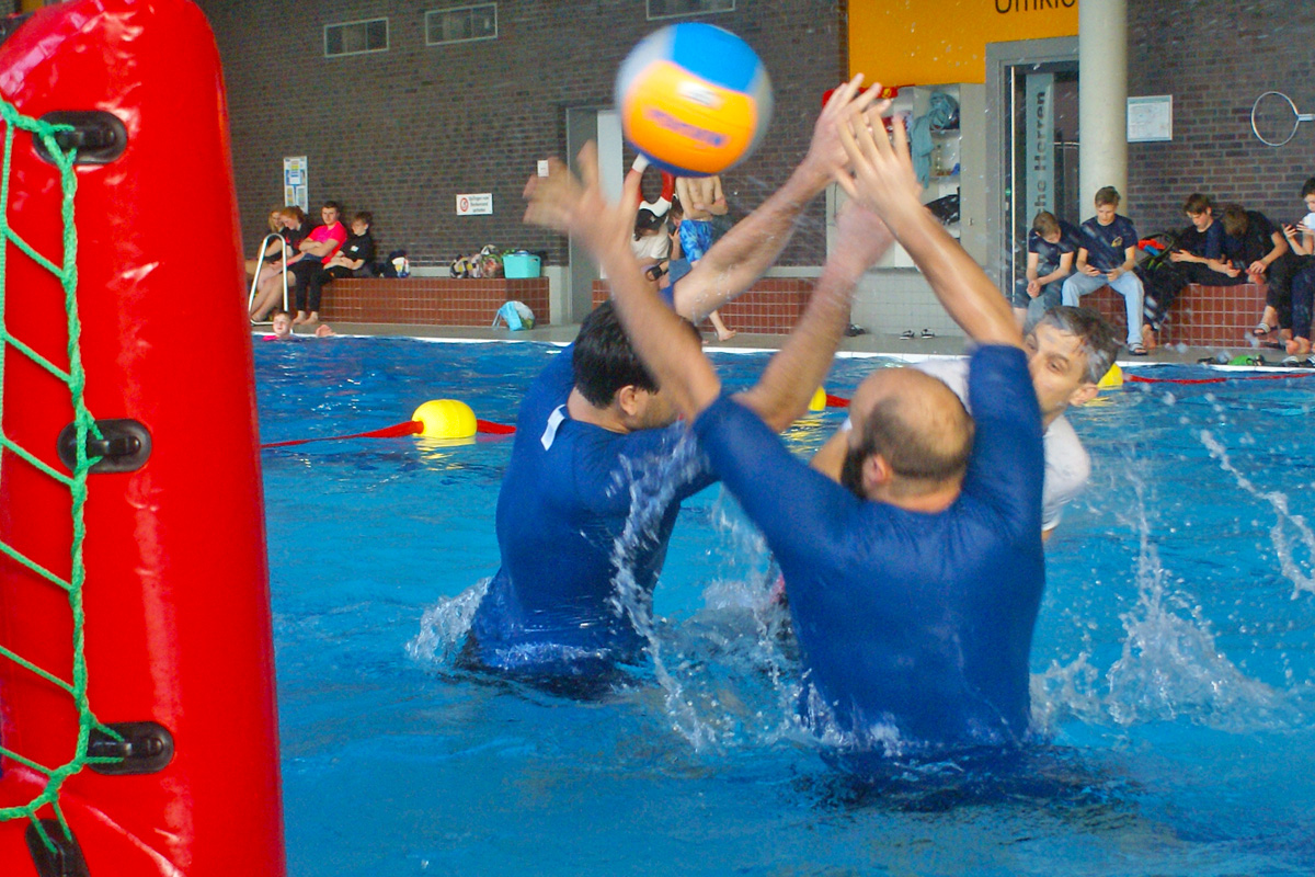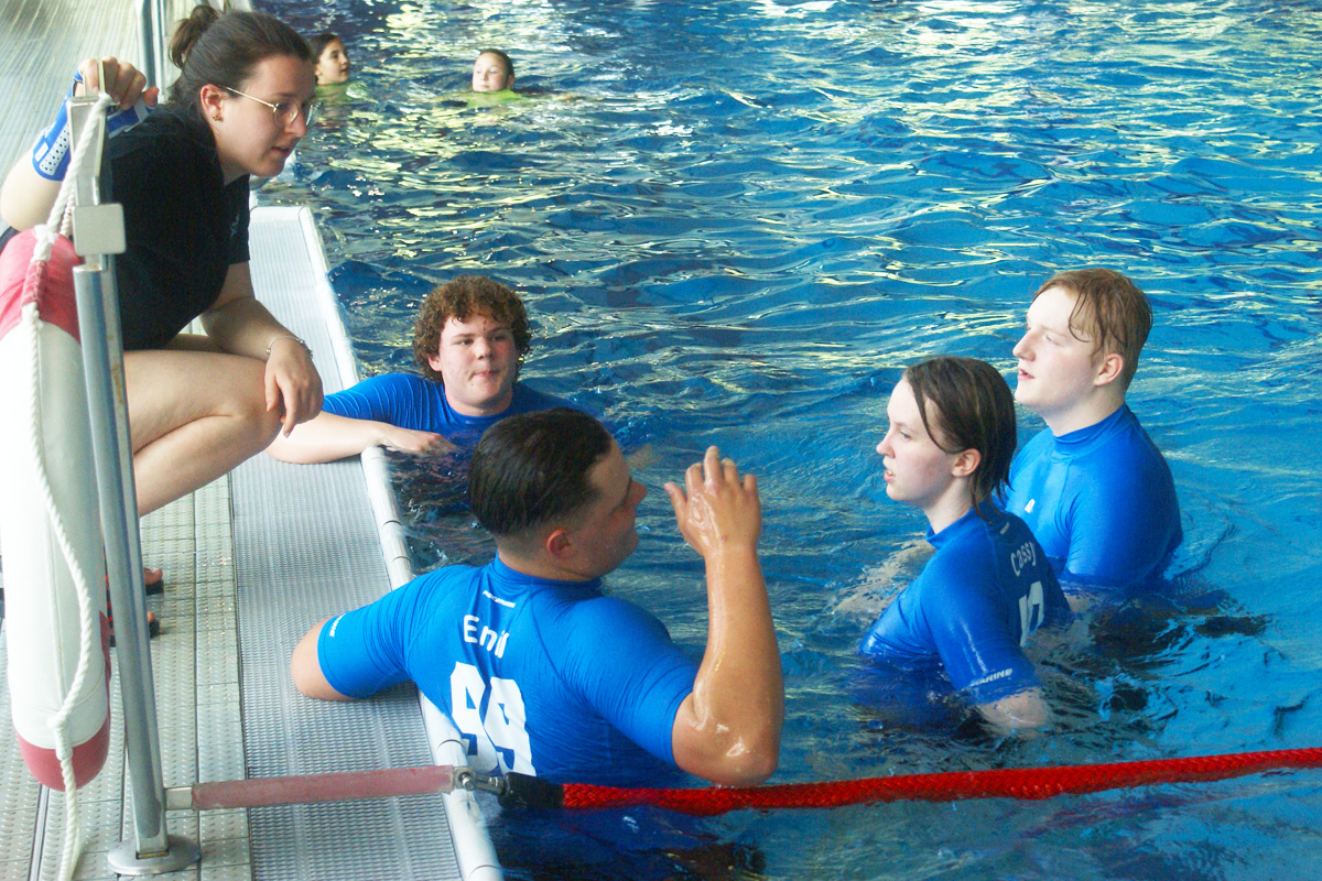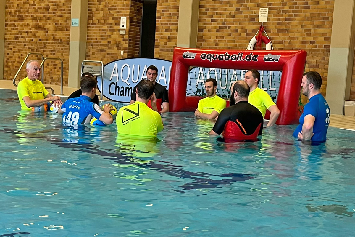 Die 12 Teilnehmerinnen und Teilnehmer wurden in den vielfältigen Anforderungen des Aquaball-Trainings geschult. Neben sportartspezifischen Trainingsmethoden im Wasser und an Land standen auch moderne Themen wie Inklusion auf dem Programm. Die theoretischen Einheiten wurden durch praxisorientierte Übungen ergänzt und es war eine helle Freude den Teilnehmern zuzusehen, wie sie - je nach Anforderung - in Kinder transformierten.