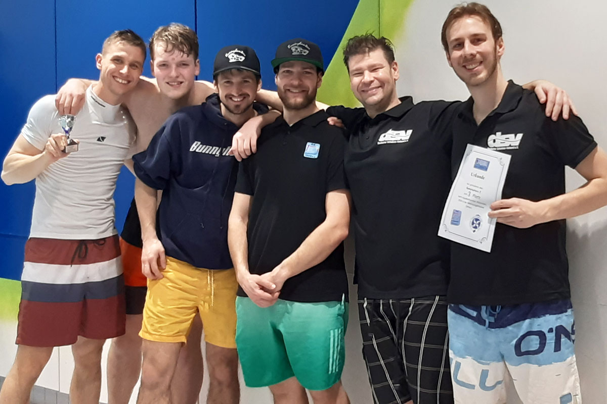 Ein weiterer Höhepunkt aus Dachauer Sicht war das Abschneiden der Youngsters, die mit Rang 3 den dritten Podestplatz an diesem Tag für die Bunnyhunters einfahren konnten. Die Mischung aus erfahrenen und neuen Spielern und Spielerinnen fand sich in dieser Konstellation gut zurecht, wobei besonders Selma Kempe in ihrem allerersten Aquaballturnier überhaupt zu überzeugen wusste. Als das Spiel gegen die Ingolstädter in die Verlängerung ging, fasste sie sich kurzentschlossen ein Herz und versenkte den Ball unter großem Jubel eiskalt im gegnerischen Tor. Im weiteren Turnierverlauf zeigte das Team dann immer wieder mal ihr Potential, insbesondere im Torwartspiel. Am Abwehrverhalten muss dagegen noch weiter gearbeitet werden, damit es in den kommenden Turnieren noch höher auf dem Siegertreppchen gehen kann.