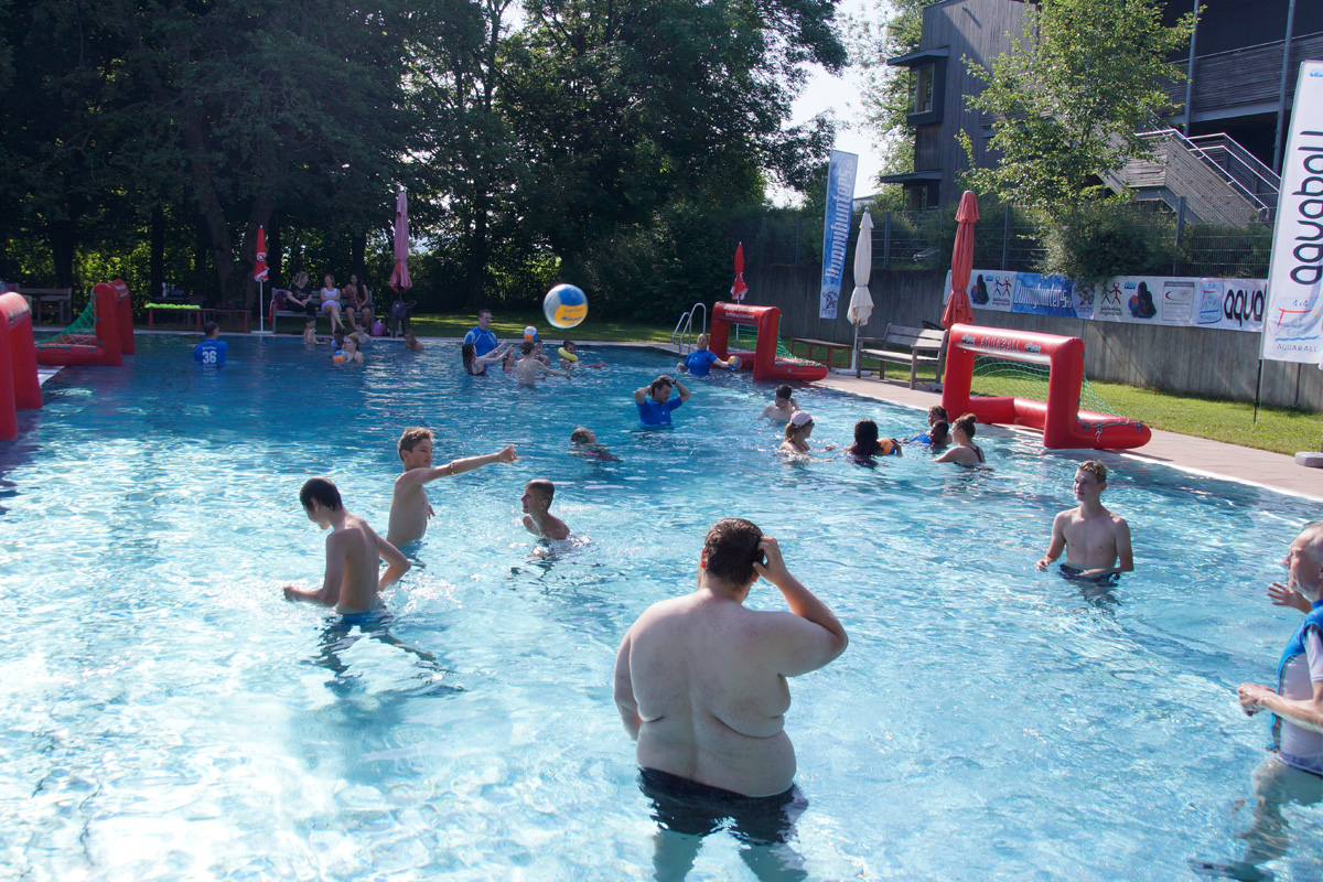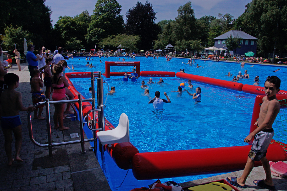 Im Anschluß gaben wir unser Spielfeld für die anwesenden Kinder und Jugendlichen im Freibad frei. Und das waren - dem Wetter sei Dank - eine Menge!