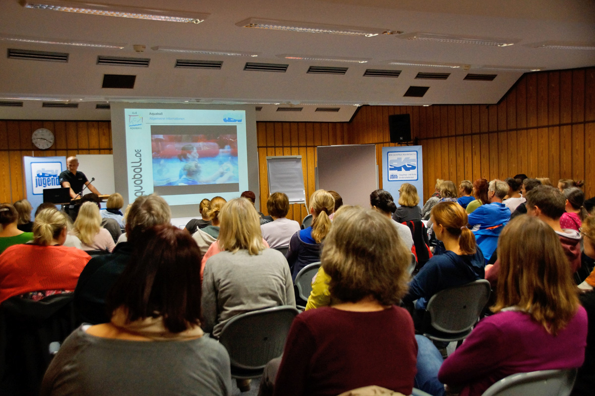 Vom 04. bis 06. Oktober fand die Fachtagung "SKS" und "SL" der DSV-Jugend in der Sporthochschule Köln statt. In diesem Jahr war Peter Demmelmayr auch als Referent gebucht und bescherte den Teilnehmern einen Einblick in den Fun-Sport Aquaball. Im Lehrsaal wurden Grundlagen und Theorie abgehandelt, um dann im Becken die Zeit für praktische Übungen und Einsatzmöglichkeiten nutzen zu können.