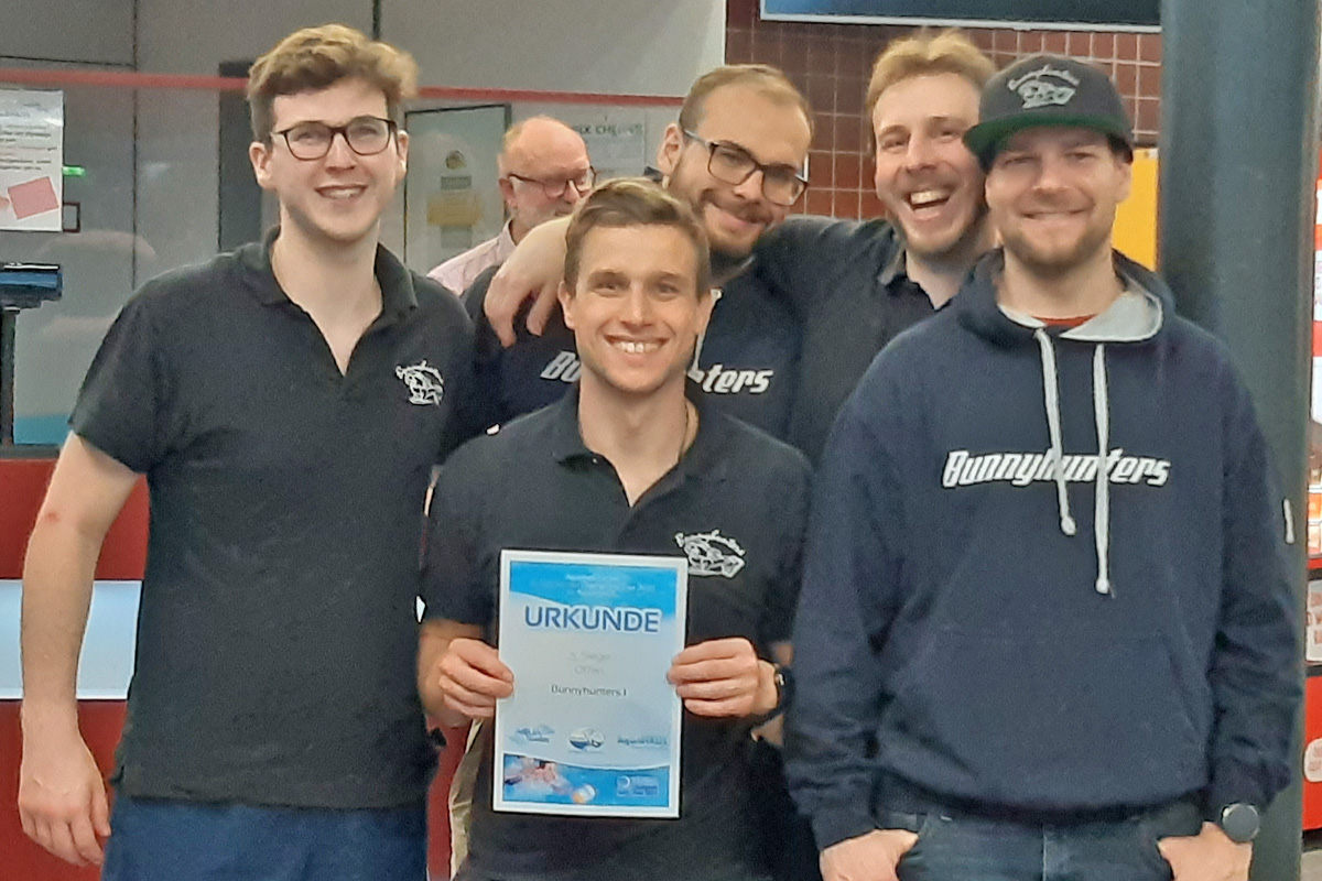 Das dritte Turnier der Aquaball-Championstour 2023 führte die Bunnyhunters am 11. März ganz in den hohen Norden nach Pewsum an der Nordsee. Nach einer langen Fahrt quer durch ganz Deutschland kamen zwei Teams der offenen Wertung und eine Damenmannschafft wohlbehalten am Ziel an. Die Rückfahrt konnten sie leider nur mit einer Podestplatzierung im Gepäck antreten.