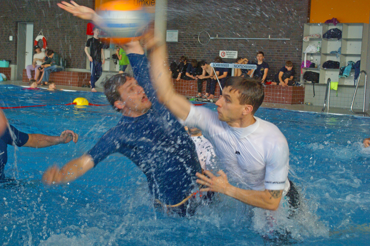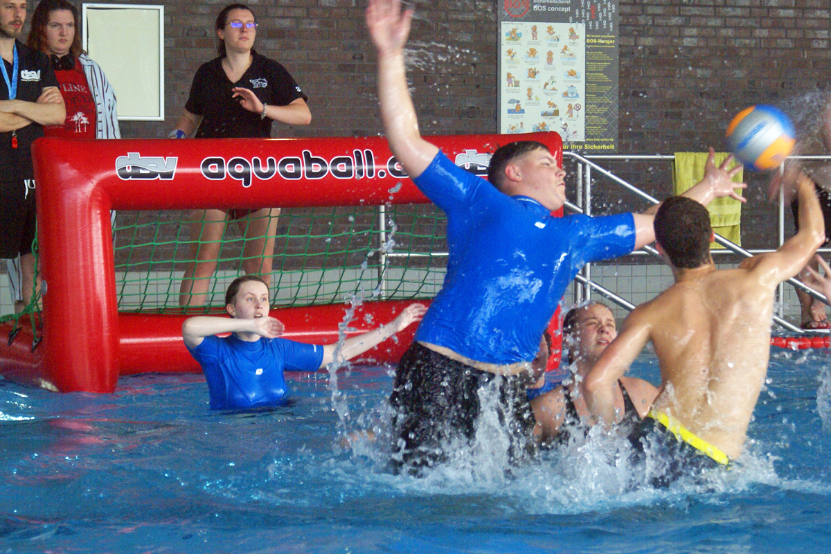 Auch die zweite offene Mannschaft der Bunnyhunters trat mit Michelle Pfaller, Patrick Frank, Vroni Kölnl, Samantha Schneider, Thomas Brandl und Peter Demmelmayr an. Besonders Letzterer zeigte in der Begegnung gegen Soest, dass er immer noch was von Aquaball versteht: In den letzten Sekunden des Spiels, in denen man schon an eine Verlängerung dachte, versenkte er den Ball unhaltbar in die obere Ecke des gegnerischen Tores. Für diese beeindruckende Aktion erhielt er sogar Anerkennung von den Münchner Spielern – ein echtes Highlight!