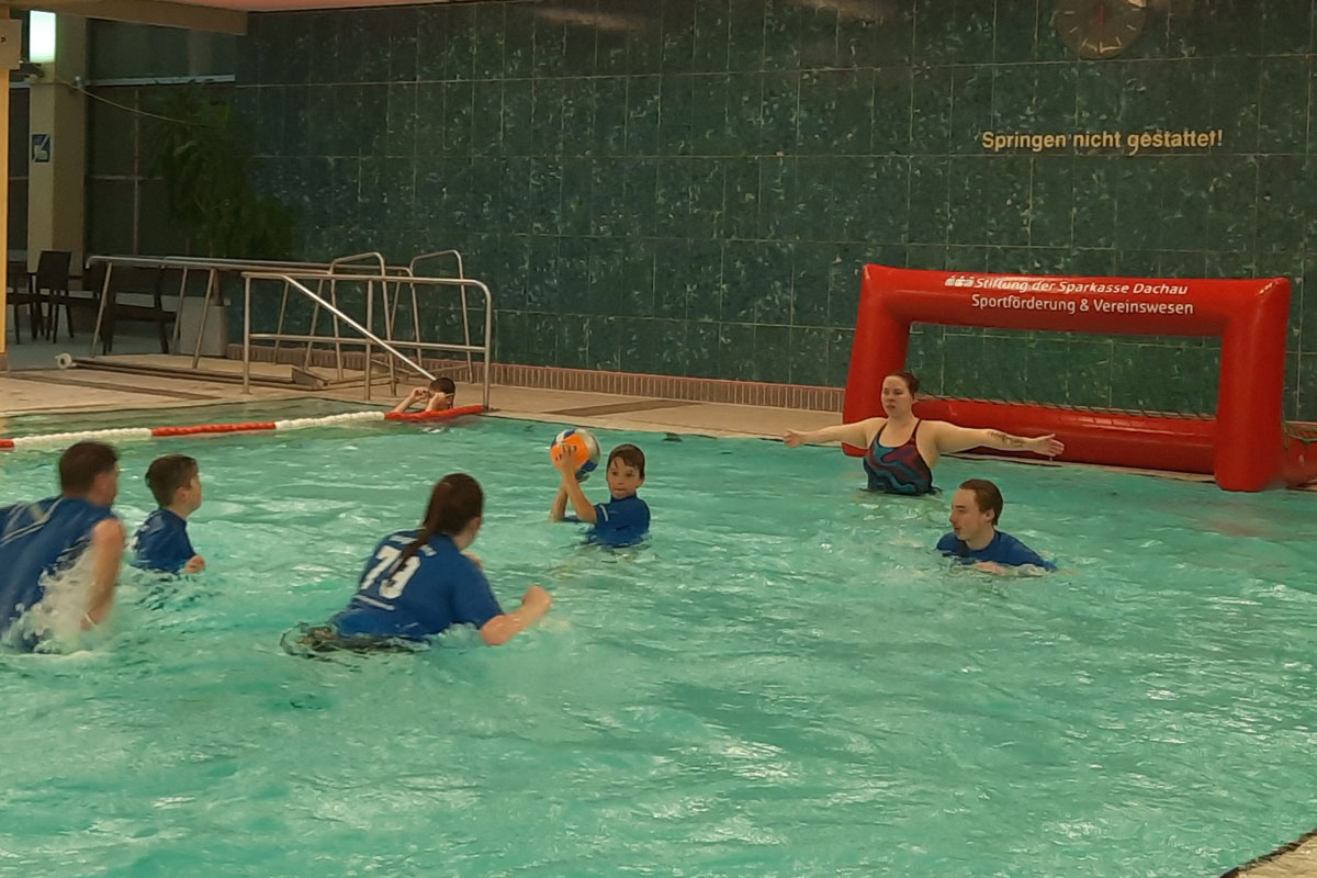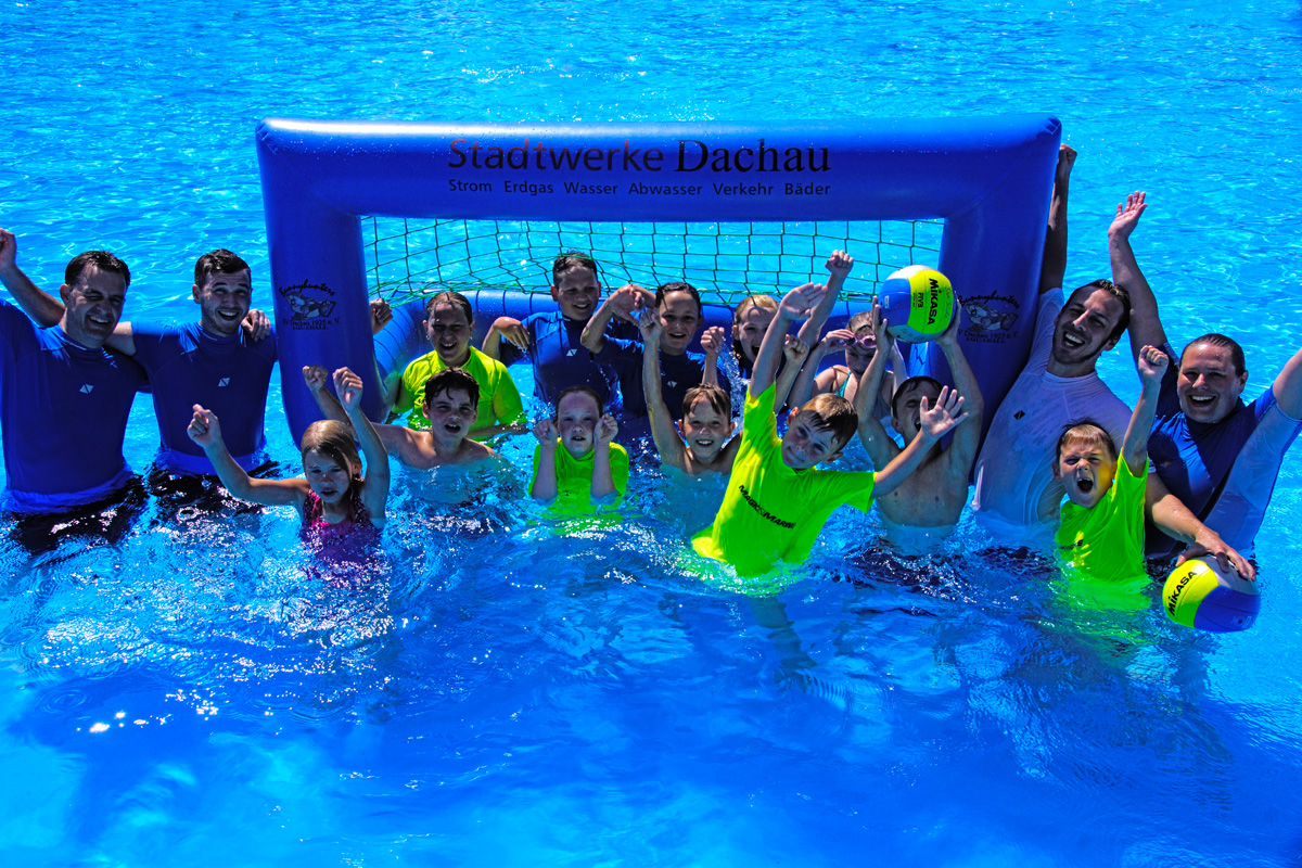 Zum zweiten Mal haben die Bunnyhunters am 13. August beim Dachauer Ferienprogramm teilgenommen und 13 Kindern und Jugendlichen die Sportart Aquaball ein wenig näher gerbracht. Bei herrlichstem Sonnenschein startete man erst mit Kennenlernspielen und den Basics beim Aquaball, wie Fortbewegung im Wasser, Fangen und Werfen. Anschließend standen auch Angriffs- und Abwehr-Übungen auf dem Programm. In der Pause gab es leckere Pommes und Erfrischungsgetränke. Da in der Zwischenzeit das Becken für den öffentlichen Badebetrieb geöffnet wurde, mussten wir nach der Pause erstmal unsere Spielfelder zurückerobern und unsere Bälle einsammeln, damit wir endlich spielen konnten. Leider war der Tag dann wieder viel zu schnell vorbei, aber für ein cooles Abschlussfoto war natürlich noch Zeit. Zum Schluss wurde in verschiedenen Mannschaften gegeneinander gespielt.