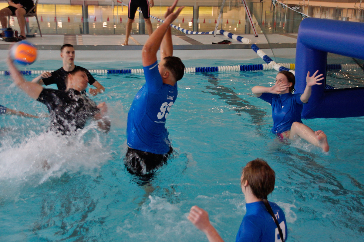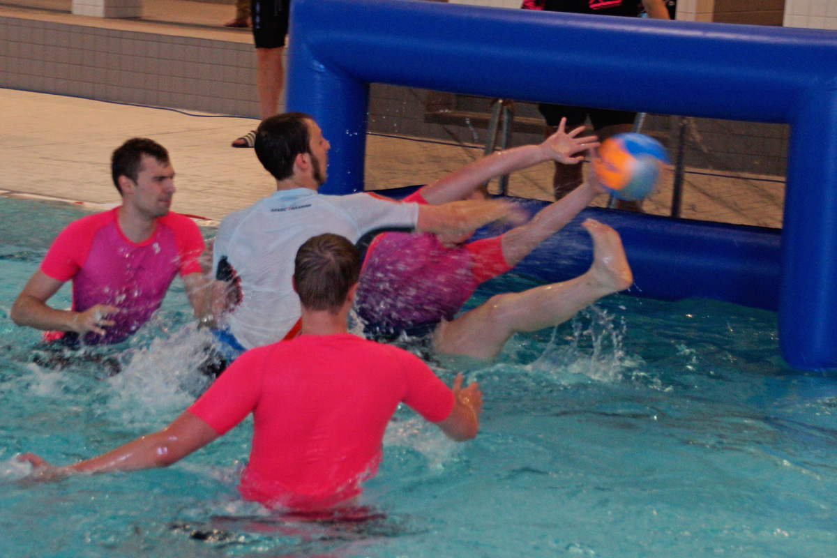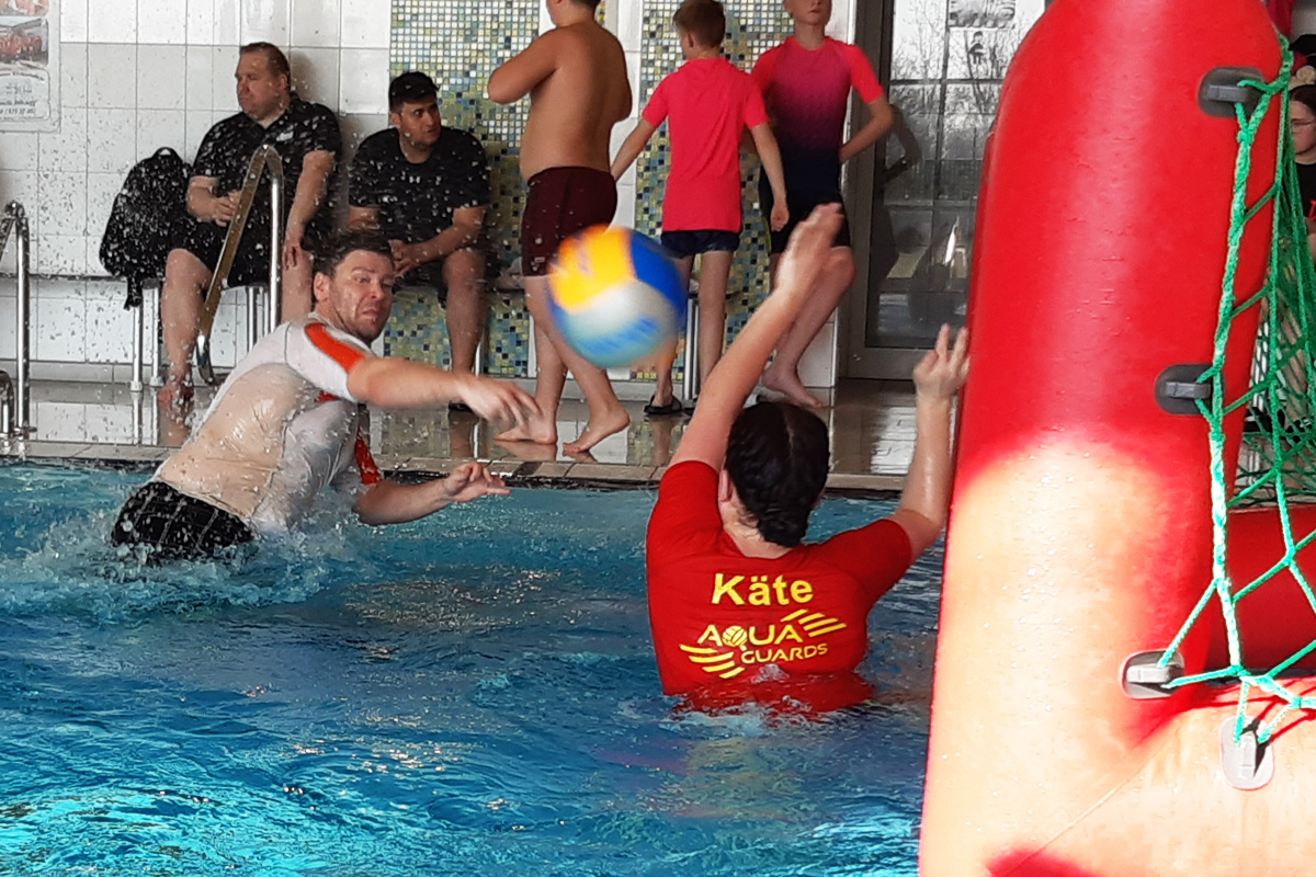 Die 12 Teilnehmerinnen und Teilnehmer wurden in den vielfältigen Anforderungen des Aquaball-Trainings geschult. Neben sportartspezifischen Trainingsmethoden im Wasser und an Land standen auch moderne Themen wie Inklusion auf dem Programm. Die theoretischen Einheiten wurden durch praxisorientierte Übungen ergänzt und es war eine helle Freude den Teilnehmern zuzusehen, wie sie - je nach Anforderung - in Kinder transformierten.